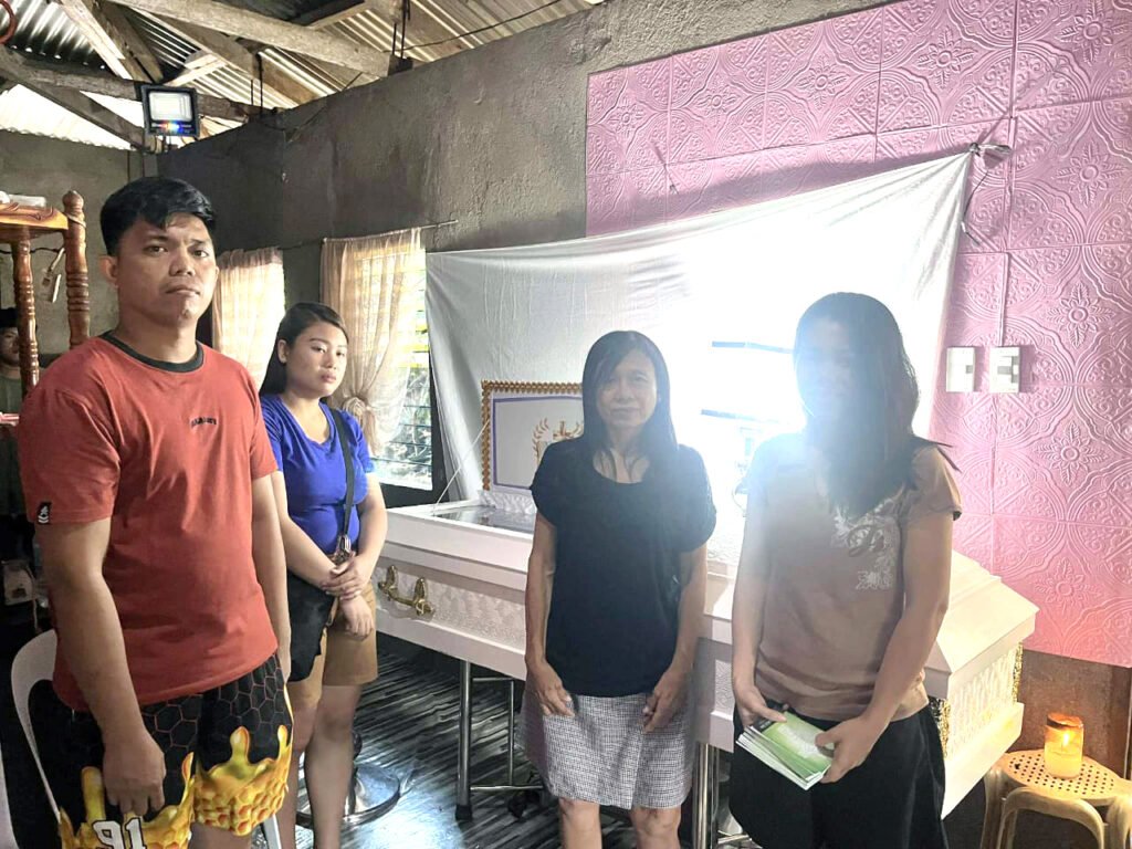 Sis. Josephine beside the casket of her husband, Bro. Julito, who died after their house collapsed on him during the earthquake